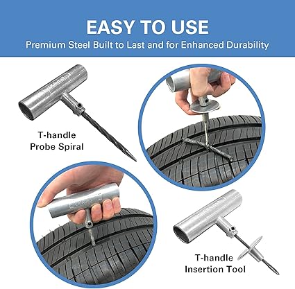- 【Premium Quality】– Our T-handle Tools are made of the high strength rustless zinc alloy, can easily pierce the plugs and quickly finished the repair work. Tire repair strips of best natural rubber are equipped with airtight bag, excellent ageing resistant performance.