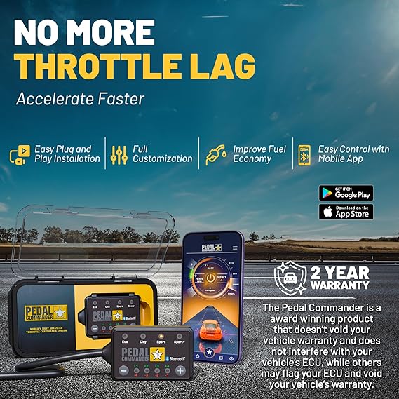 • Quick & Easy Installation: Pedal Commander is a simple plug-and-play device that takes only about 15 minutes to install. Now Bluetooth compatible, you can control the unit using our free Pedal Commander app