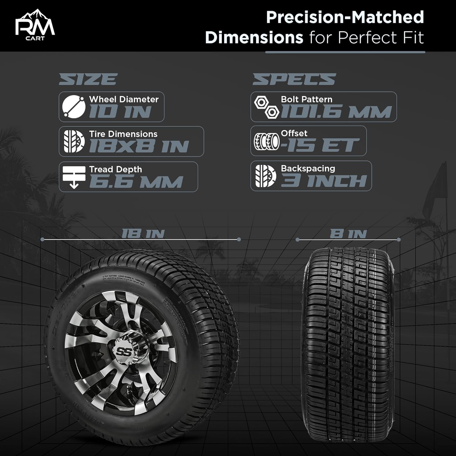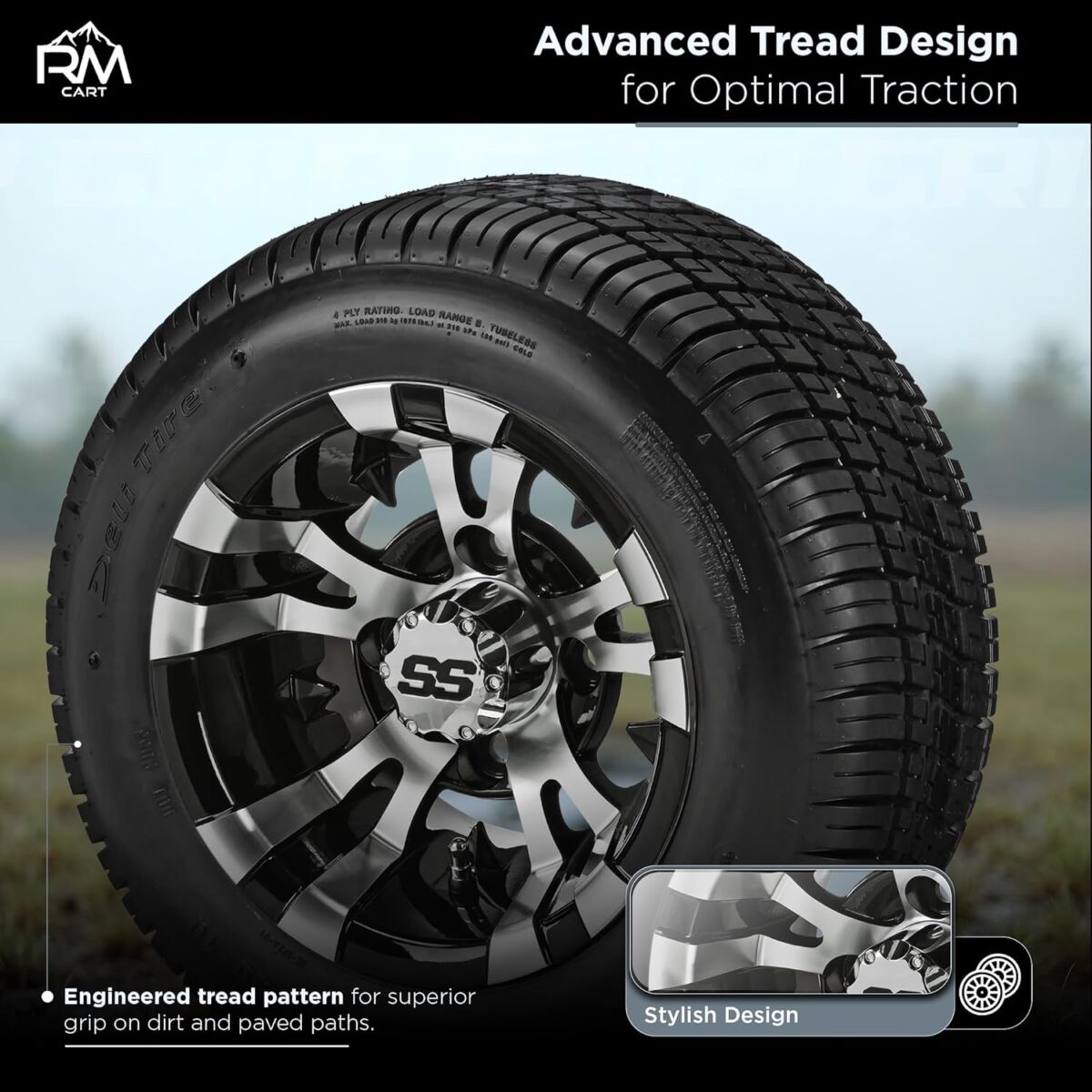 - Our golf cart tires and wheels combo are crafted with precision and engineered with high-quality materials for durability—resisting punctures, wear, and tear. The tires feature advanced tread patterns designed to grip the ground like never before for unparalleled traction.