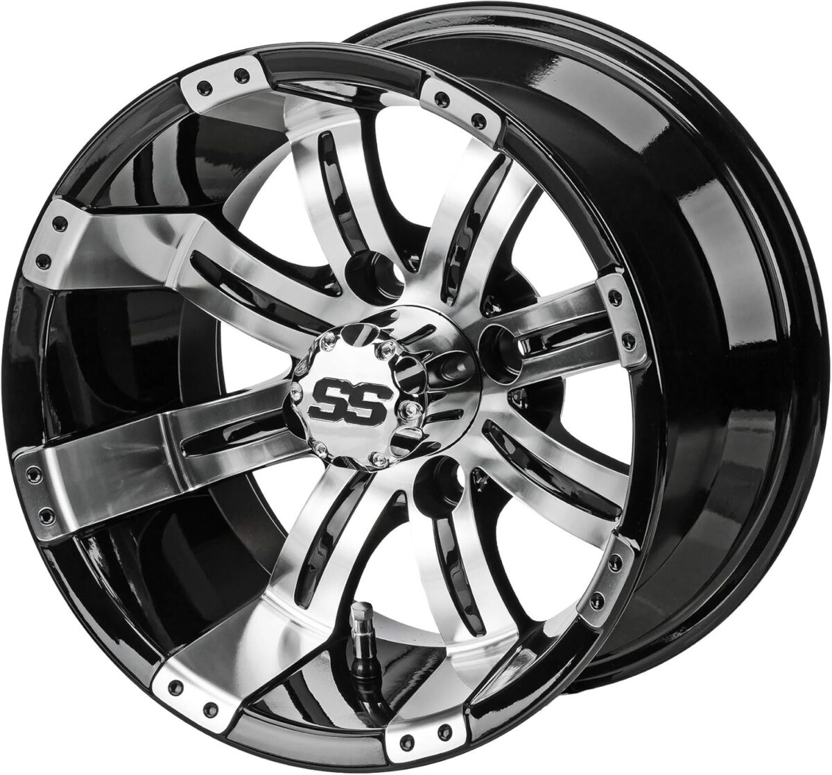 - Set of four (4) 12″ Casino Black/Machined wheels, four (4) 215/35-12 LSI Elite tires, four (4) SS wheel caps, and sixteen (16) standard lug nuts. Tires are pre-mounted on wheels before shipping.