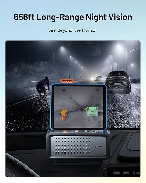 - Extended 656ft Viewing Range: With a 656ft far-reaching view, the TOPDON NV001 automotive night vision system allows drivers to see further ahead, giving them ample time to react to any situation on the road. This extended range is particularly beneficial for night driving, offering a significant advantage in visibility and safety.